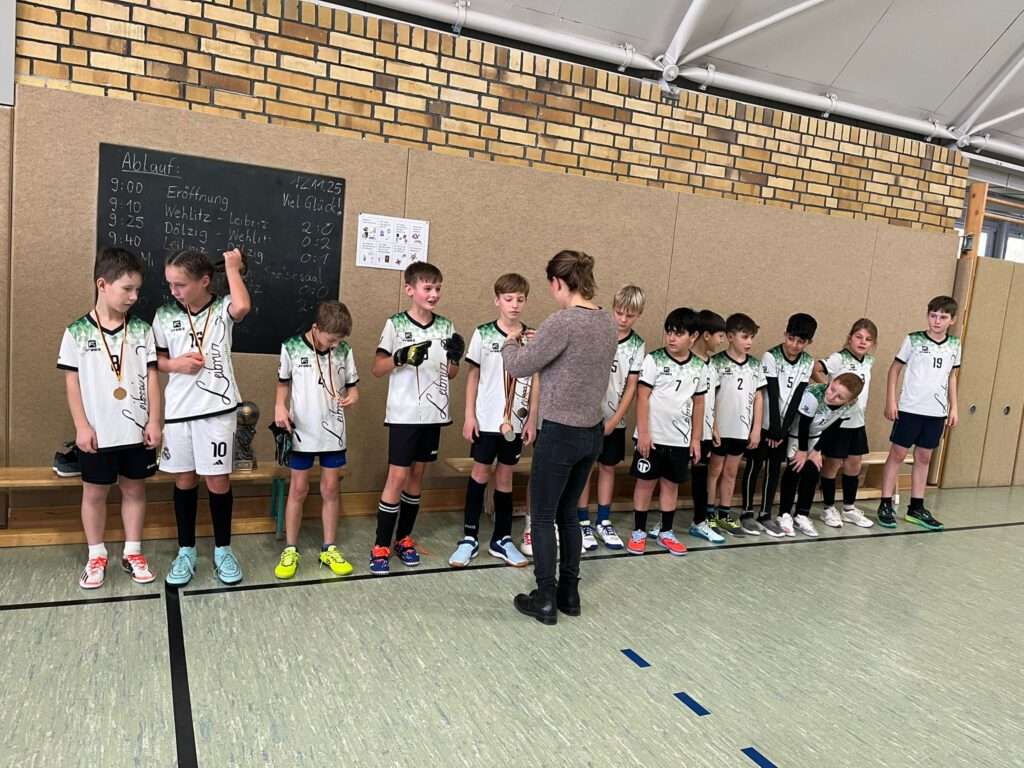 Am 12.11.25 war die Grundschule Wehlitz Gastgeber des jährlichen Grundschulfußballcups. Unsere Schule nahm mit einer Auswahl von 14 SuS der Klassenstufe 4 teil. Nach 2 Niederlagen und 2 Unentschieden unseres Teams stand am Ende Platz 3 zu Buche. Der imposante Wanderpokal blieb beim verdienten Turniersieger, der gastgebenden Grundschule aus Wehlitz. Silber erkämpfte die Grundschule aus Dölzig. Das abschließende 7m- Schießen gegen beide Teams konnte unsere Mannschaft siegreich gestalten. Und natürlich wurde vor Ort auch der Wehlitzer Schulzoo noch mit einem kleinen Abstecher besichtigt und bestaunt.